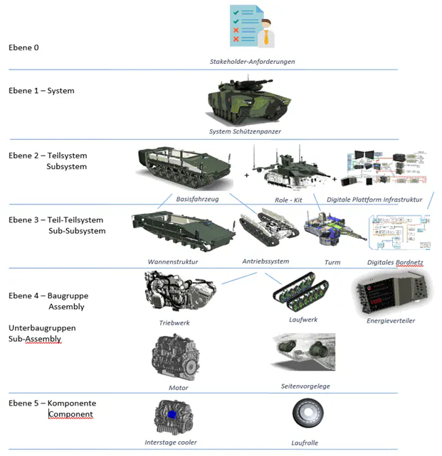 Im Rahmen des aktuellen Entwicklungsprozesses (V-Modell) eines Landfahrzeugs wird die Konzeptionsphase als entscheidender Schritt betrachtet, in dem die Ausgestaltung des Designs auf allen Ebenen festgelegt wird. Um die betroffenen Prozesse zu optimieren, soll ein KI-Modell trainiert werden, welches genau in dieser Konzeptions-Phase der Konstruktion unterstützen soll, und zwar insbesondere auf den ersten beiden Ebenen des Prozesses.