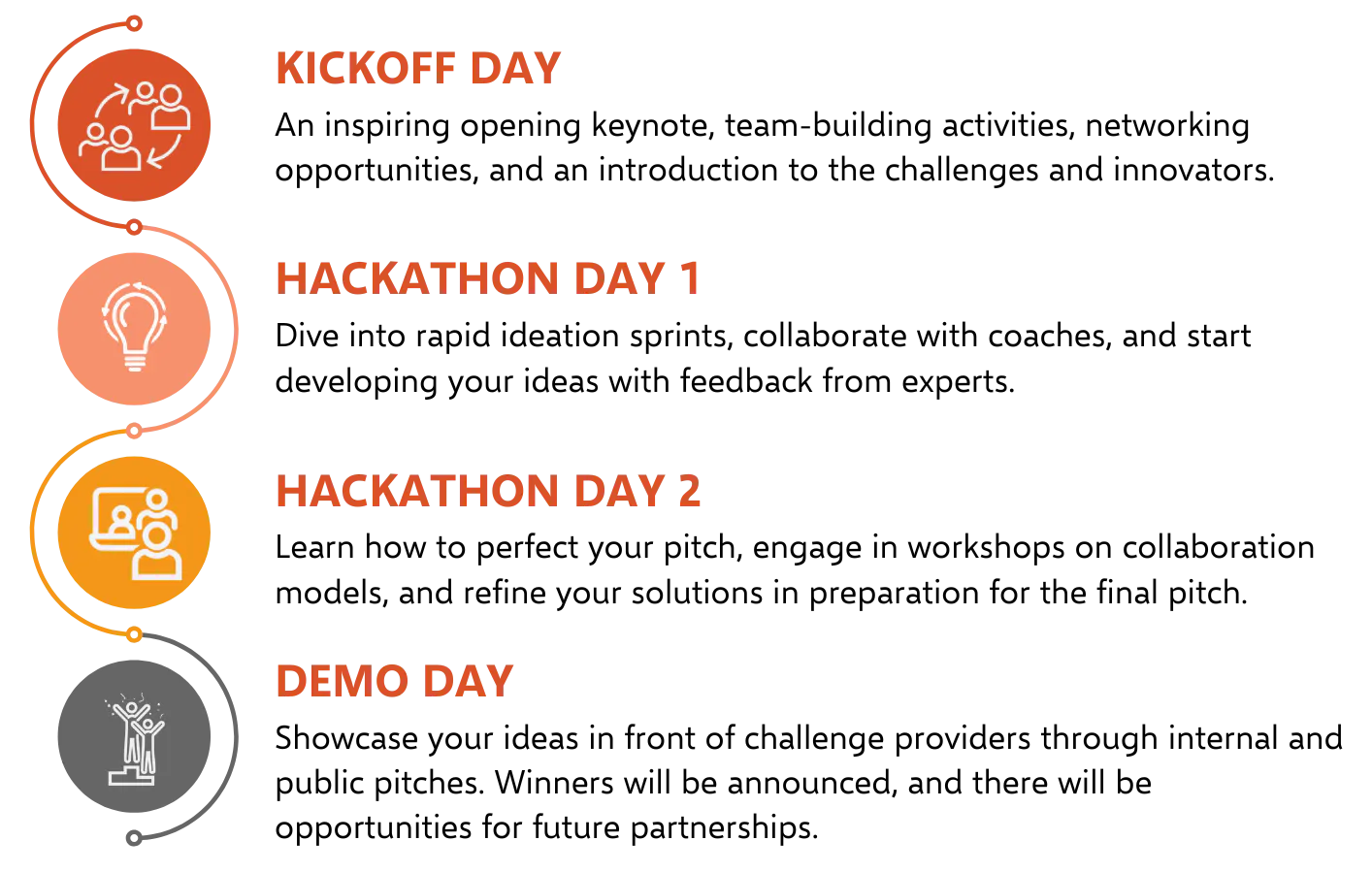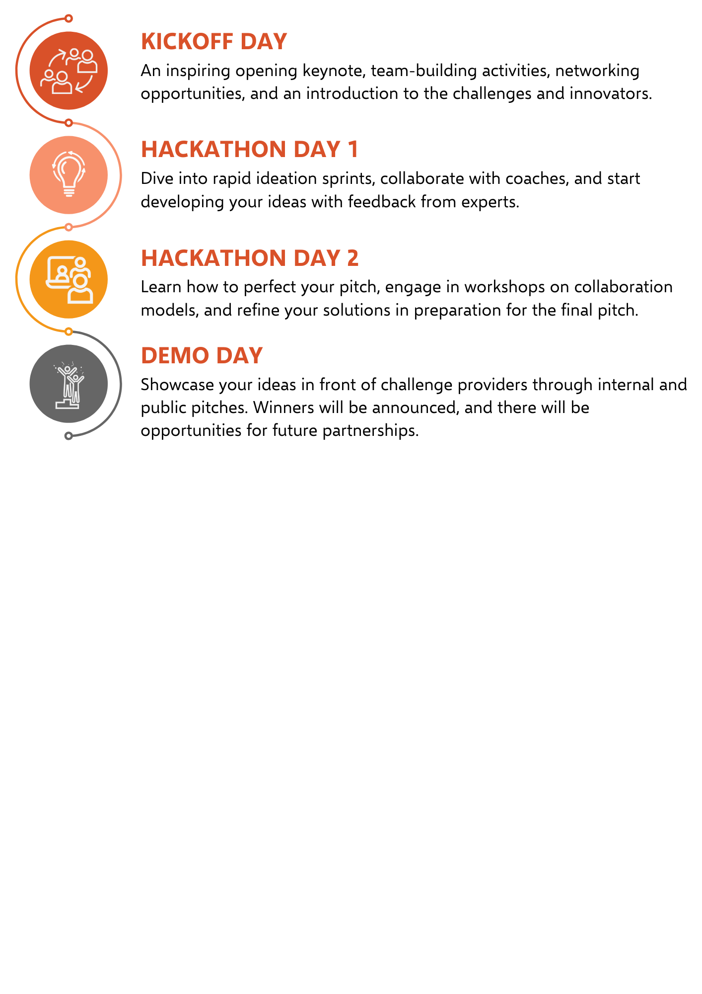Join us for an inspiring event that brings together innovation, collaboration, and empowerment! Featuring dynamic workshops, interactive coaching sessions, an exciting hackathon, and engaging pitch opportunities, this event is designed to unleash your creativity and enhance your skills.