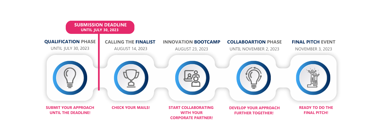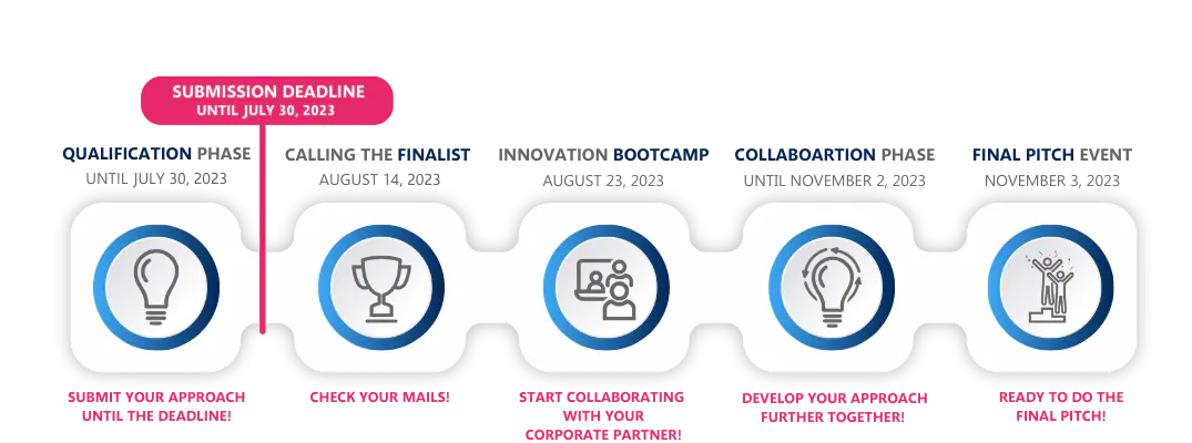 The final teams will be invited to a digital innovation bootcamp, where they can get valuable input to further develop their approaches. The innovation bootcamp especially lays the foundation for the further collaboration phase and your work with your challenge provider.