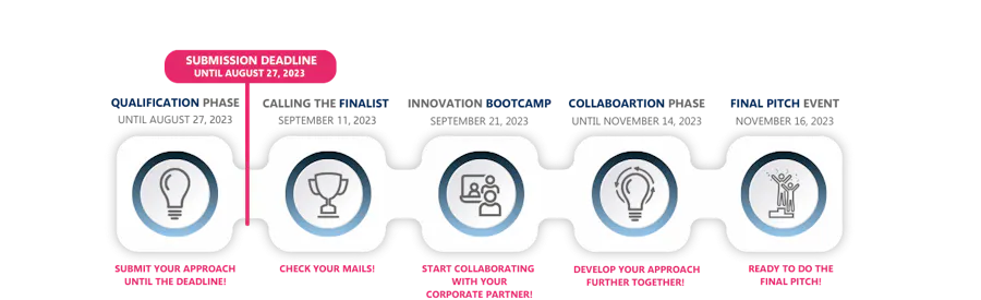 The final teams will be invited to a digital innovation bootcamp, where they can get valuable input to further develop their approaches. The innovation bootcamp especially lays the foundation for the further collaboration phase and your work with your challenge provider.