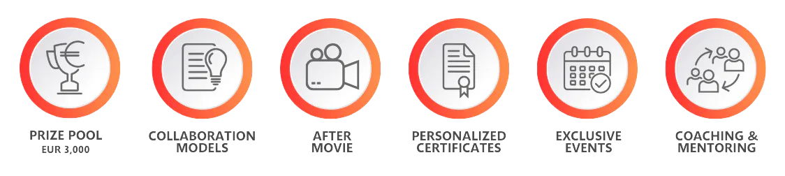 If you're still not convinced, we have plenty of incentives to finally convince you: By delivering prize money, exclusive events, collaboration programs or even funding opportunities our program will enable you to give your career, your concept or your startup the boost it deserves.