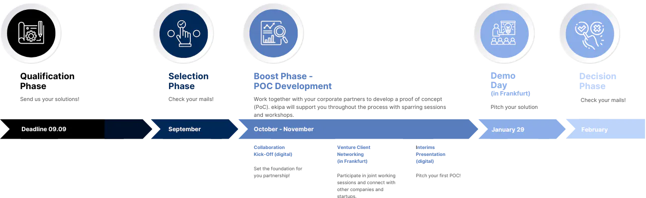 Following the Demo Day, a two-week decision phase begins. During this time, MTU Aero Engines will evaluate the concrete proposals for long-term collaboration and decide whether to enter into a strategic partnership. ekipa supports both parties throughout this decision-making process.